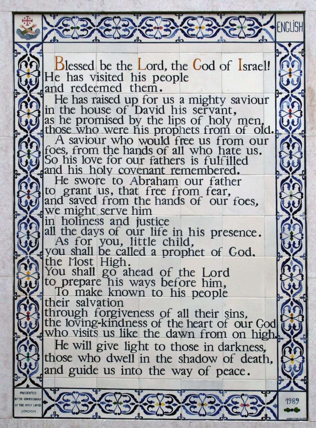 Because of the lack of trust, Zechariah was struck dumb and unable to speak until the birth of John. It wasn’t until after John’s circumcision was Zechariah able to regain his speech. It was then that he finally and wholeheartedly believed in God’s miraculous gift. It took him nine long months to deeply reflect on everything. At first, Zechariah kept a closed heart to God’s blessing because it all seemed so impossible. But when he witnessed the birth of his son, his heart embraced renewed faith in God’s Providence. He finally believed with all his heart, soul, and mind. How do we know? Through his canticle (pictured above). He was filled with the Spirit. Zechariah was a changed man forever and learned to believe fully.