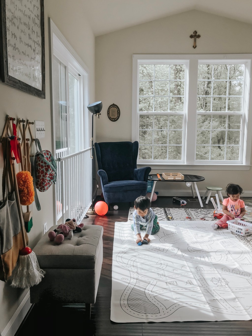 Deep down what makes me most grateful isn’t a perfectly kept home, but rather a home with toys and books laying around the room, plush dolls tucked underneath a blanket on the couch, artwork on walls, and a variety of bread crumbs, cereal or rice on the floor from mealtimes hours before.