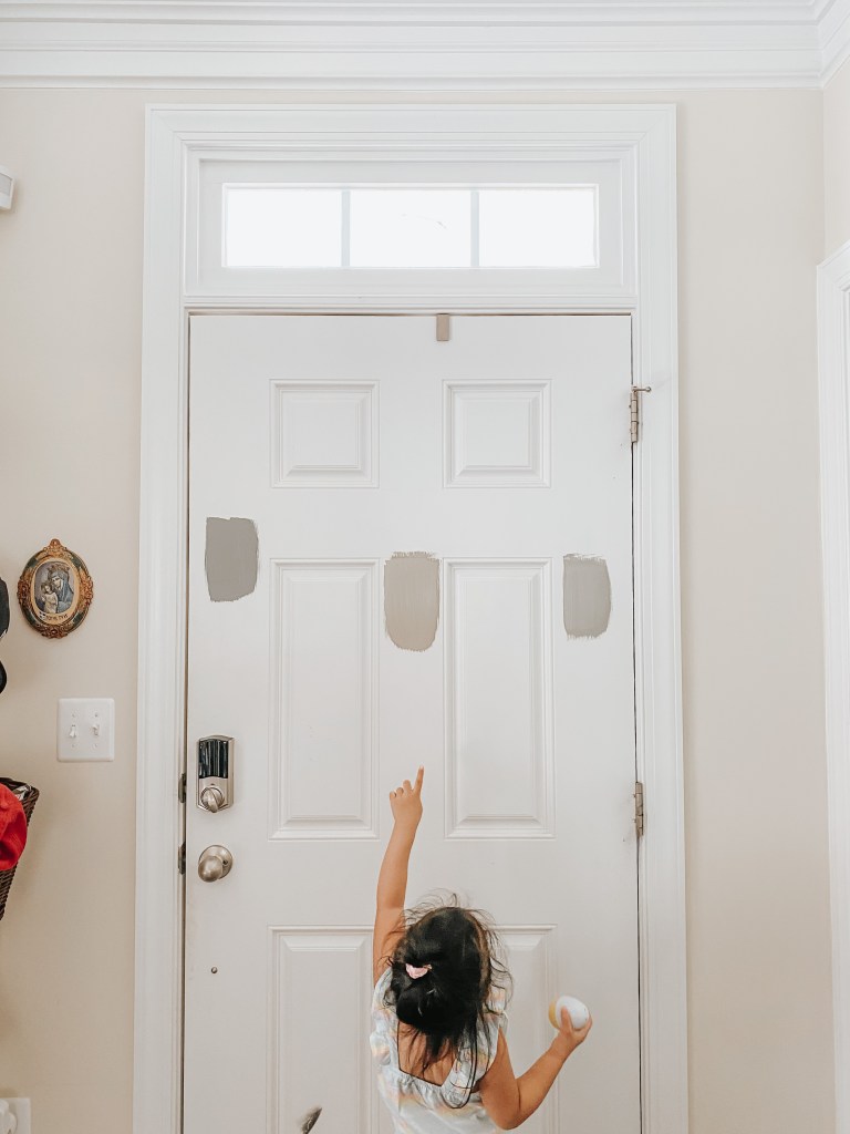 Days leading up to my time off, Jon and I created and arranged a bunch of sticky notes under major areas of our family life; one of which was to paint the interior side of our front door in the entryway (under our house projects/purge list). Of all the rooms in our house, the entryway has evolved the most as I tried out different things periodically. This time, however, the plan was to give it a refresh that would make a more lasting impact. Enter in, paint.