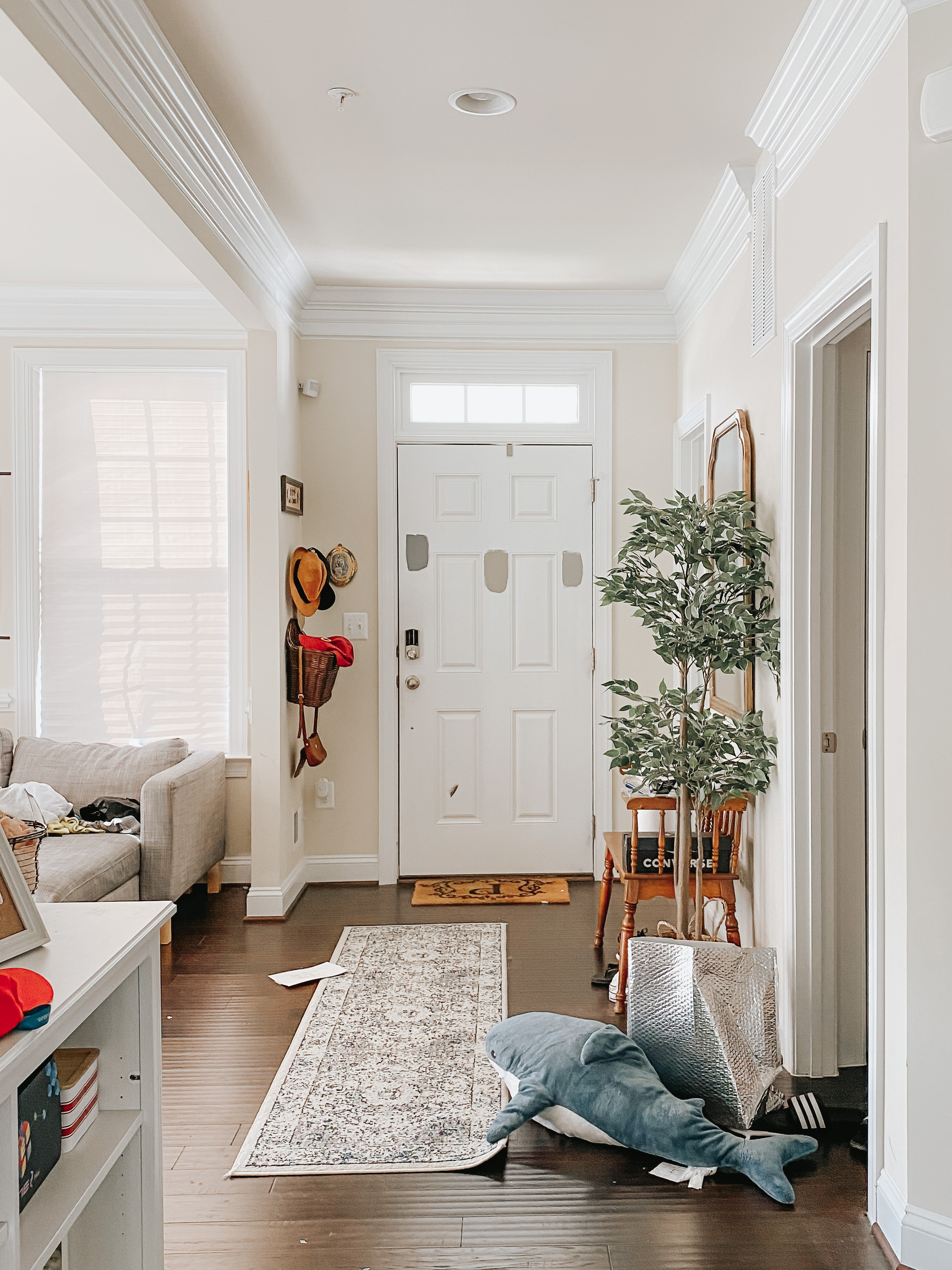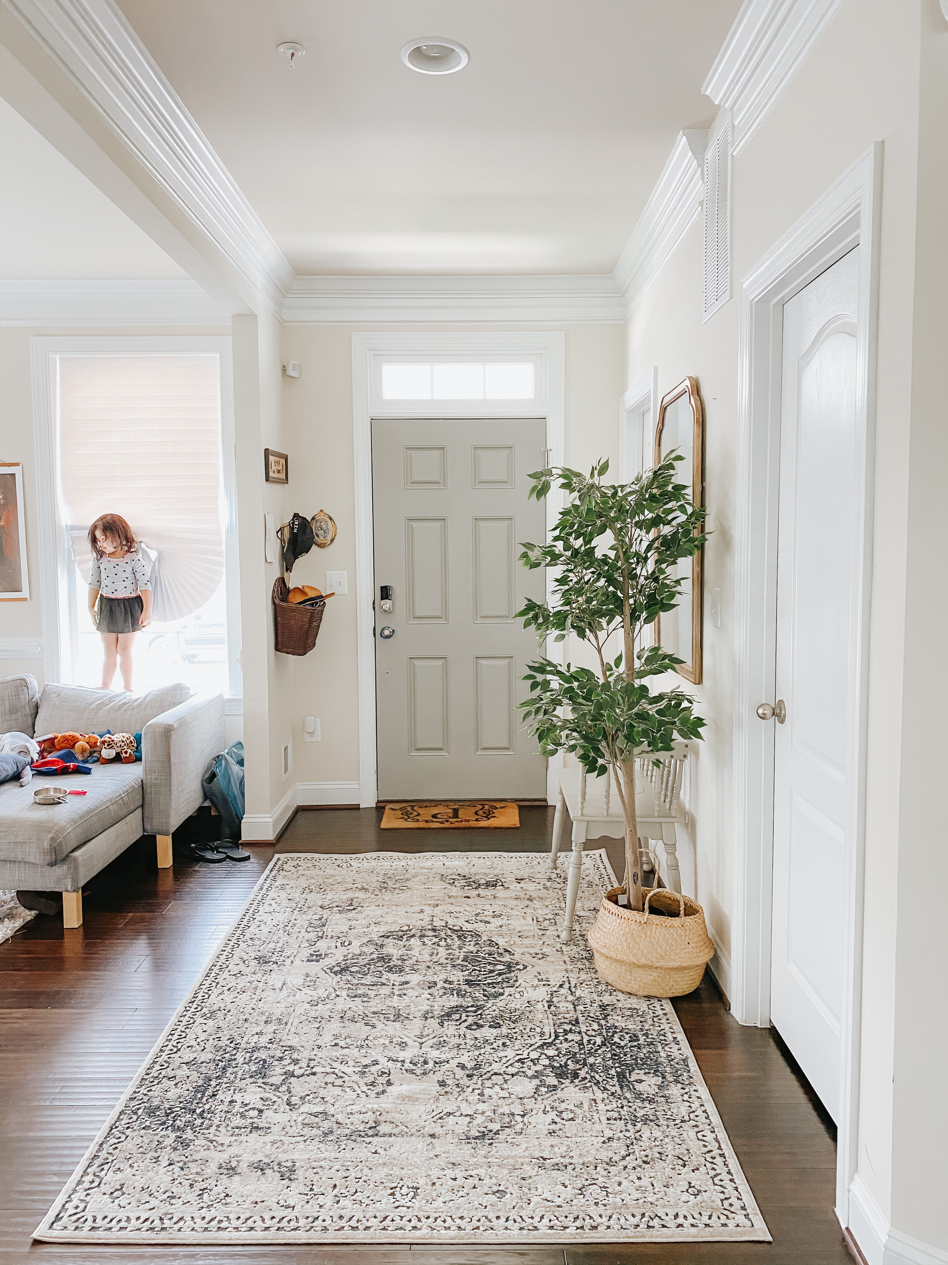 - We originally had a typical runner size since moving in. When determining size this time around I decided not to skimp out on the rest of the entryway space’s area rug coverage.