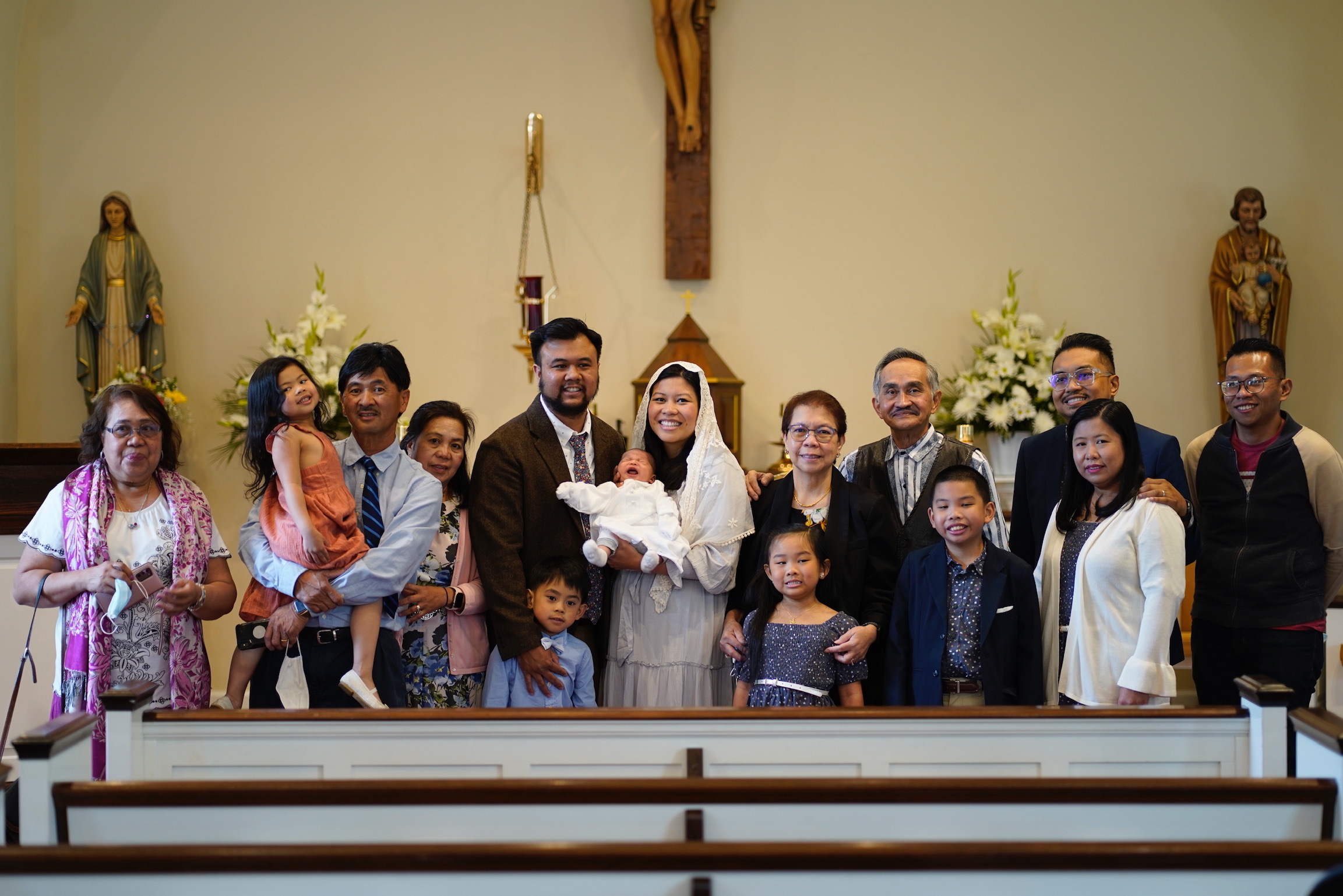 When Jack turned one month, he was baptized into the Catholic Church on Mother’s Day. We were particularly grateful that our pastor agreed to doing the Extraordinary Rite of Baptism for Jack, since it was his first time doing so. Both James and Lucy were baptized in the Old Rite at our former parish so it was very important to us to ask the same for Jack many months before. We were also so blessed that our dear friends Andrew and Liz said yes to being Jack’s godparents. We are also godparents to their second daughter.